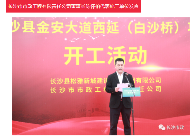 陳懷柏代表長沙市政衷心感謝各級領(lǐng)導(dǎo)的支持和信任。他表示,長沙市政將以高度的責(zé)任感和歷史使命感,運用全新的管理理念,發(fā)揚“攻堅克難、開拓創(chuàng)新”的市政精神,秉承長沙市政的“三個一法則”:從第一道工序起抓質(zhì)量,從第一個工作日起抓進度,從每一個細節(jié)處抓安全文明施工。保質(zhì)、保量、按期完成項目建設(shè),著力打造精品工程、優(yōu)質(zhì)工程,致力金安大道建設(shè),助力長沙縣大城崛起!